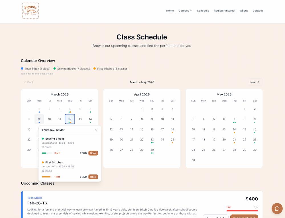 The booking platform for small creative and wellness studios. Manage courses, payments, waivers, and student communication in one place.